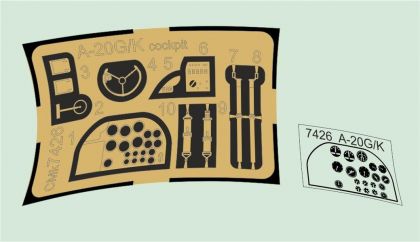 Detailní odlitky a lepty pilotního prostoru pozdních verzí bombardérů A-20 Havoc/Boston. Kromě toho obsahuje set i záchrannou dinghy umístěnou za pilotním prostorem.