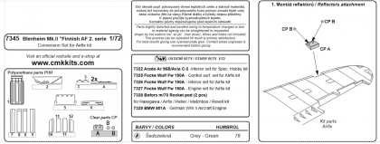 Detailní odlévaná pumovnice je určena k vylepšení nového modelu firmy Airfix. Kromě vlastní pumovnice sada nabízí závěsníky, otevřené dveře pumovnice a z průhledného materiálu odlité světlomety používané na finských Blenheimech.