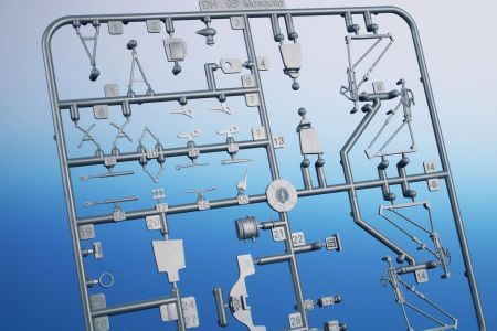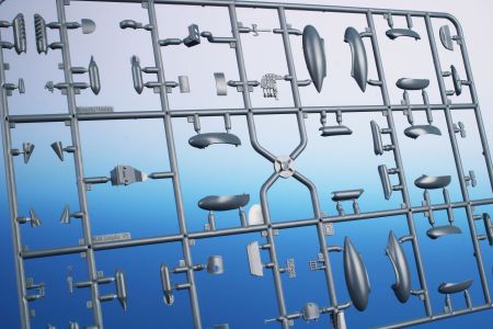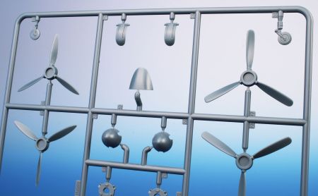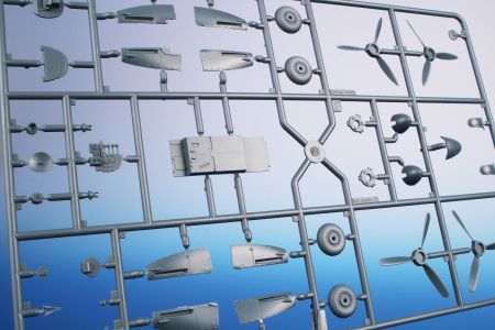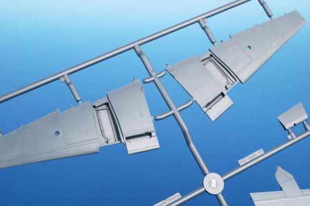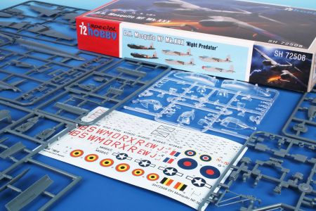 Nová, velmi detailní, stavebnice je rozložena do pěti rámečků dílů ze šedého plastu a rámečku čirých dílů. Obtisky nabízí stroj britského esa Waltera Gibba, stroj československé sqn. RAG, polské sqn. RAF, stroj perutě RAAF operující v Británii a stroj USAAF operující z Itálie.