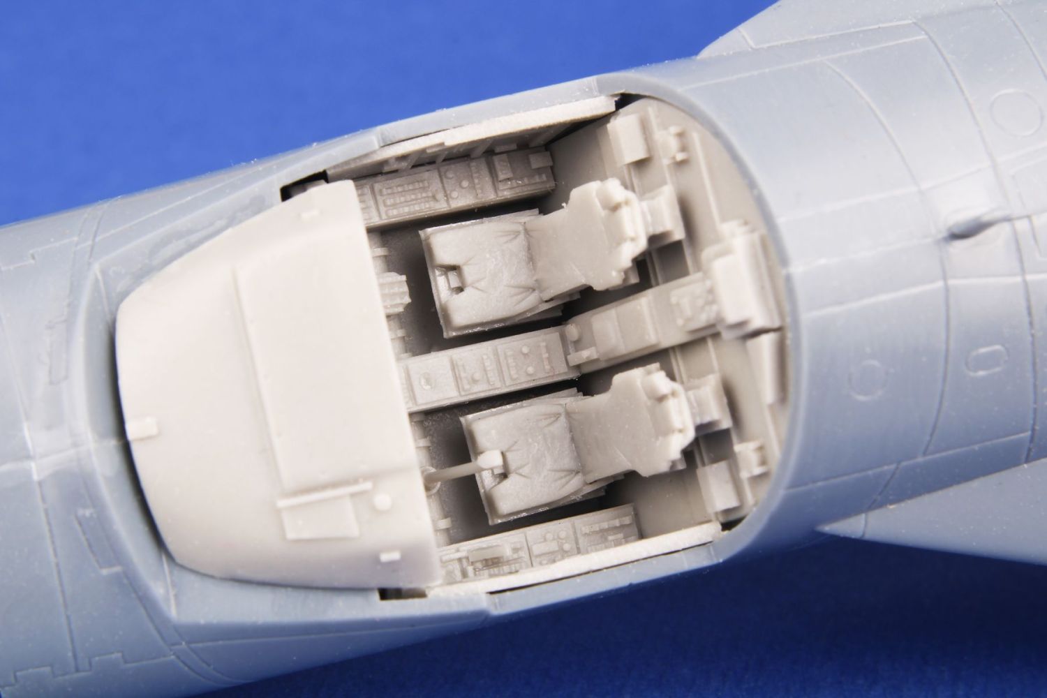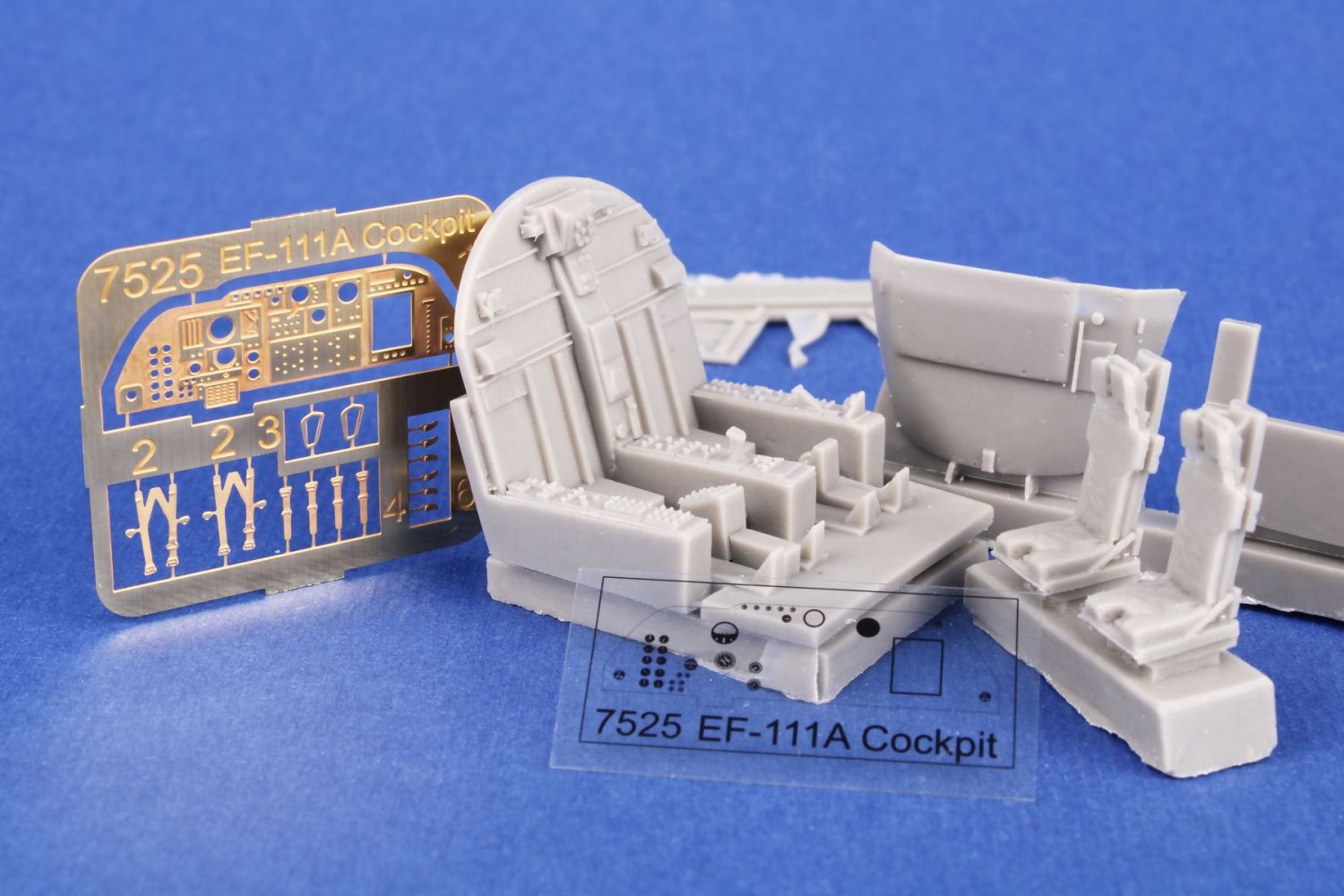 Detailní odlévaný cockpit pro stavebnici F-111E firmy Italeri. Odlitky jsou doplněny lepty.