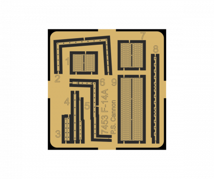 Otevřená detailní resinová schránka s rotačním kanonem určená pro nový model F-14A Tomcat firmy Academy. Lemy otvorů a nábojové pásy jsou součástí planžety leptů.