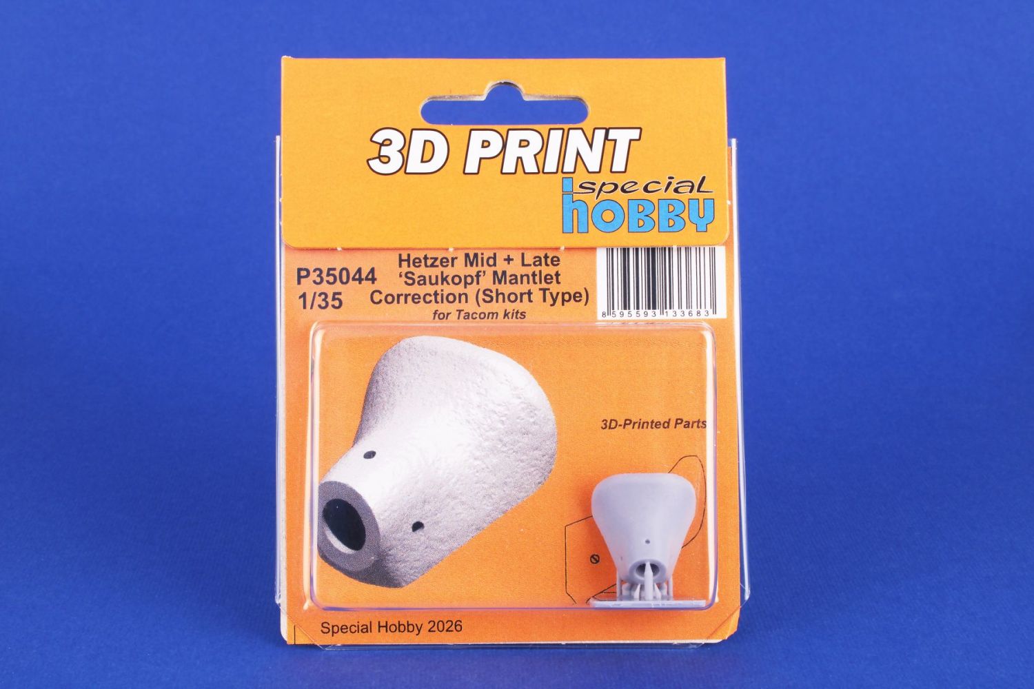 Stíhač tanků Hetzer byl vybaven štítem kanónu, nazývaným ‘prasečí hlava’. Tento štít byl v průběhu výroby upravován, jeho tvar se měnil a byl produkován v několika variantách. Tvar štítu patří k vadám stavebnice Tacom. Připravili jsme proto 3D tištěné štíty správného tvaru. Tento set nabízí tzv. krátký typ štítu.