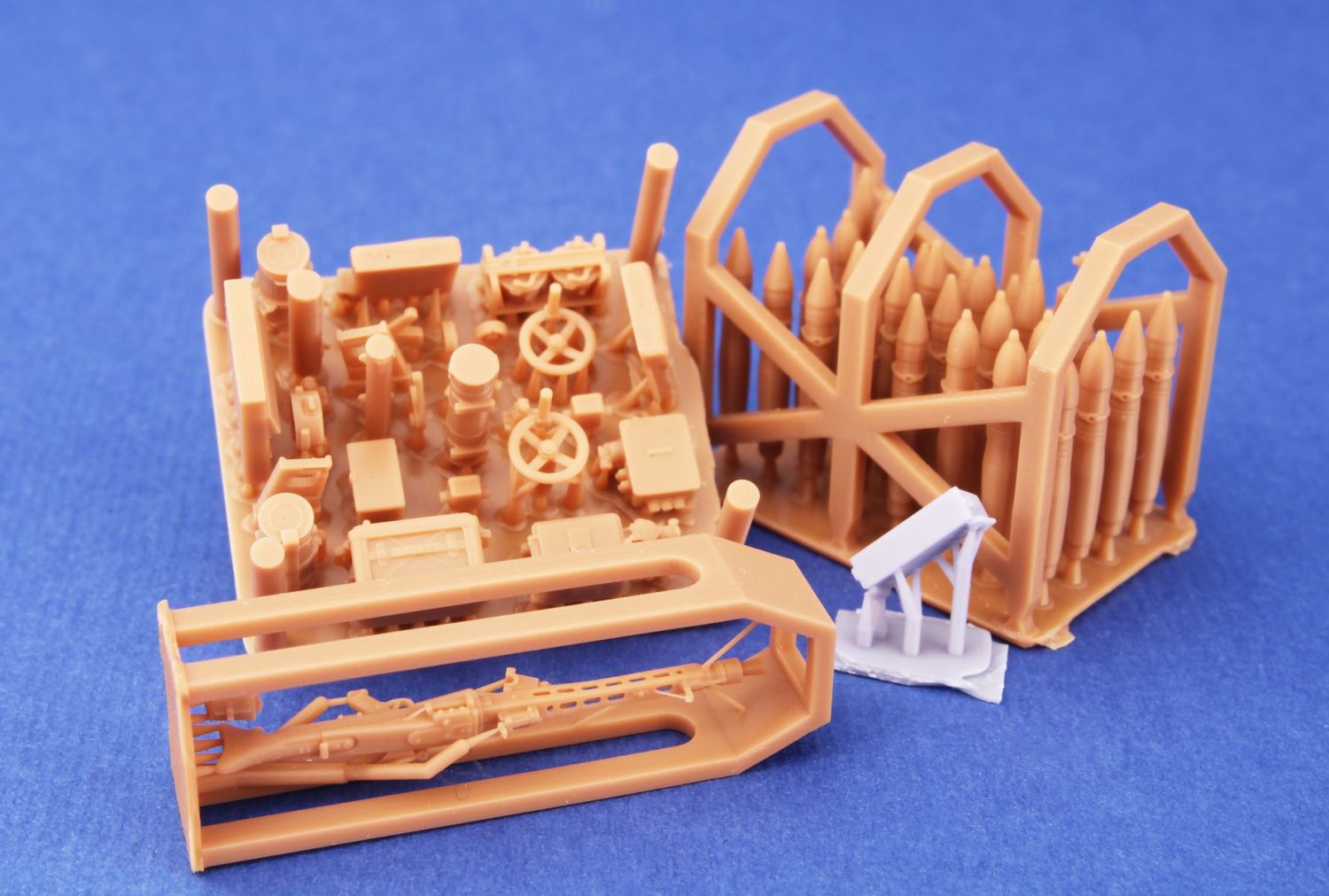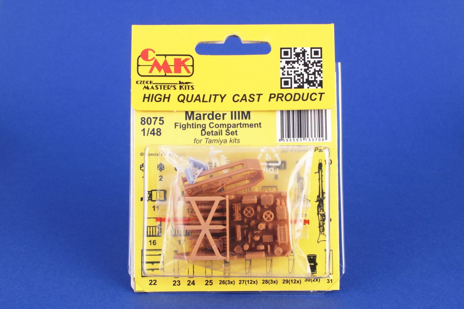 3D tištěný set opravující a doplňující interiér bojového prostoru stavebnice Marder IIIM. Dodává stavebnici vše, co v bojovém prostoru osádky chybí, tedy náboje do kanonu, radiostanici, intercom osádky, kulomet Mg 42 se zásobníky, samopal MP40 a sumky, hasicí přístroj a válcová pouzdra plynových masek.