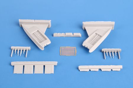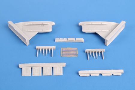 Otevřené zbraňové kontejnery s kulomety a schránkami nábojů, určené pro 1/48 OV-10 Bronco firmy ICM. Odlitky jsou doplněny.