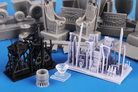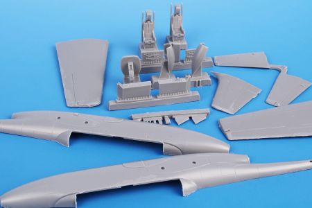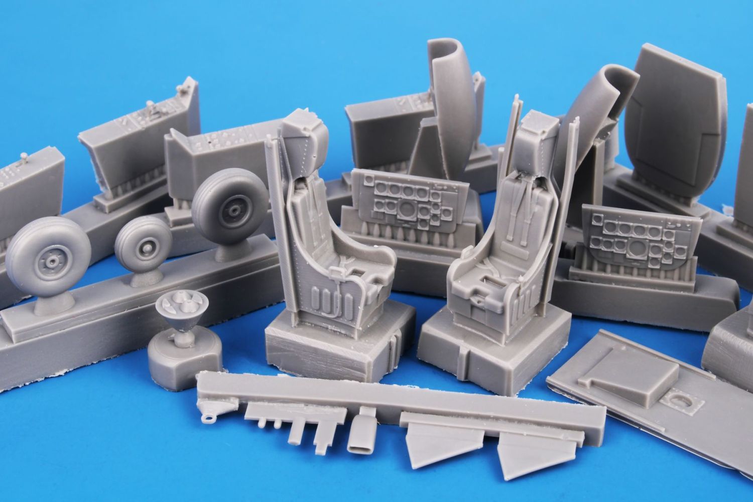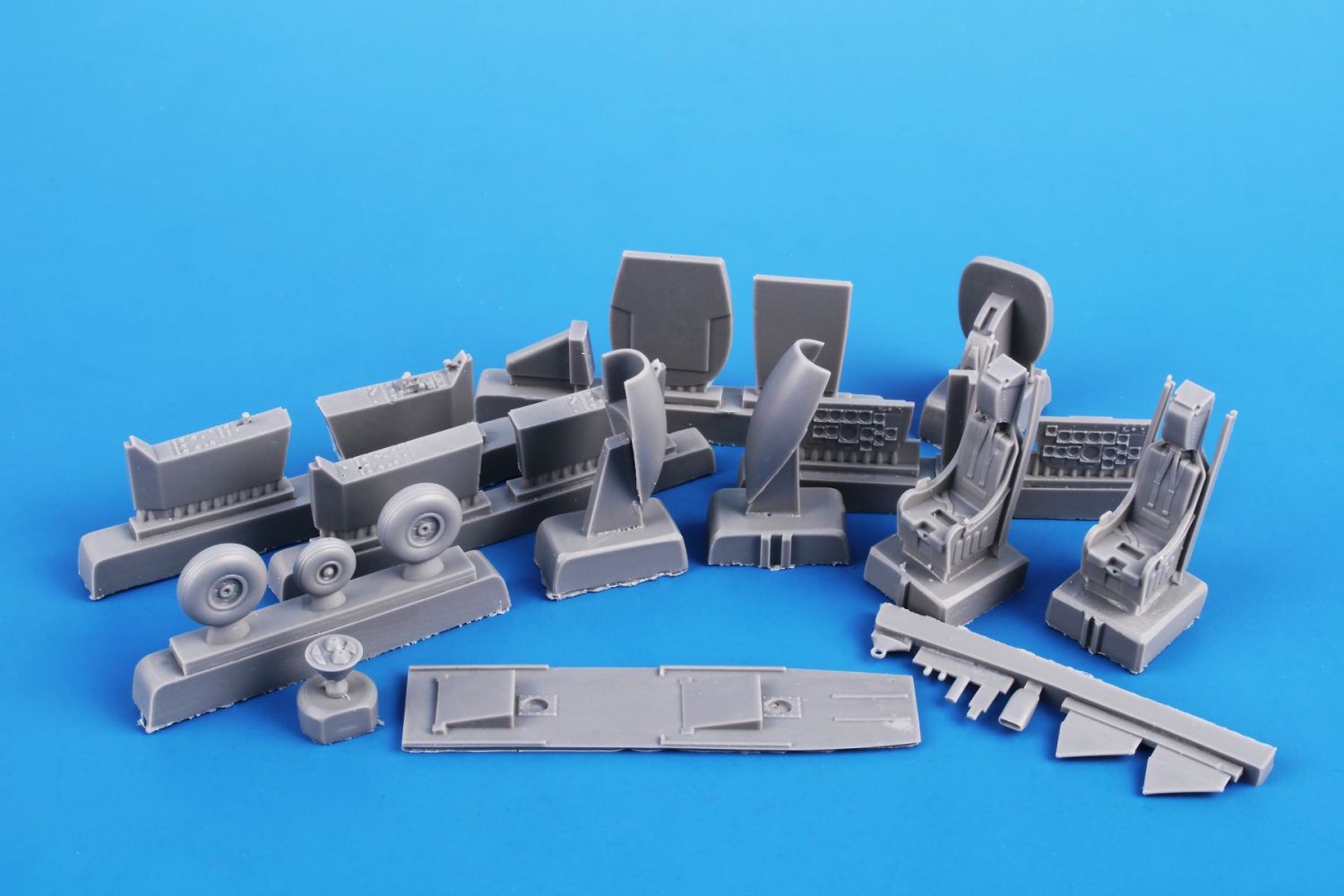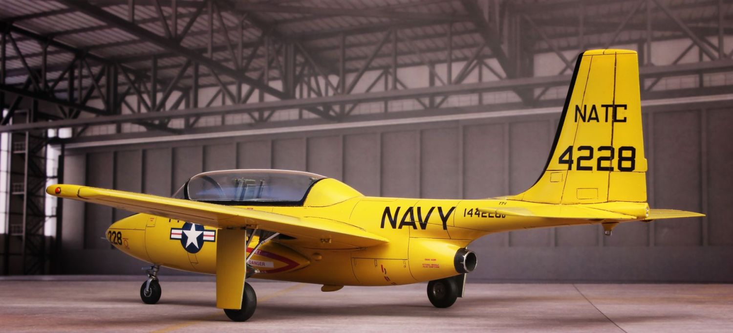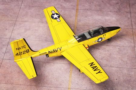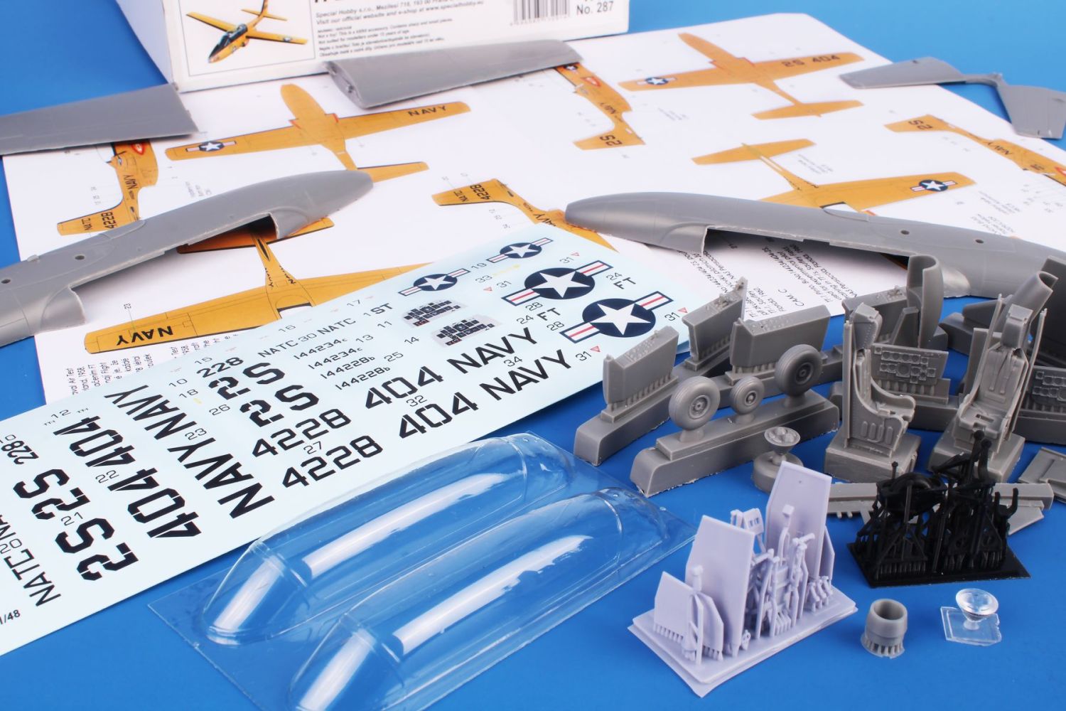 Detailní model amerického proudového cvičného letounu, kombinující resinové a 3D tištěné díly. Překryt kabiny je vacuformový. Obtisky nabízí označení pro tři oranžové letouny US NAVY.